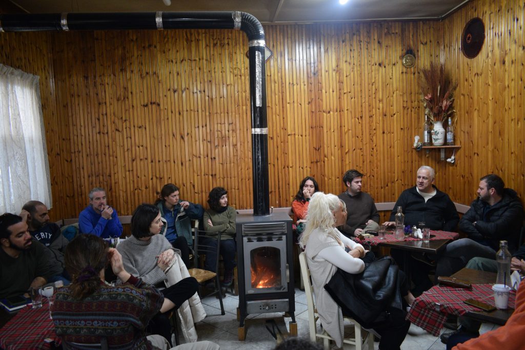 Βασική στόχευση της επίσκεψής τους ήταν η επαφή με τους μόνιμους κατοίκους της περιοχής, αυτούς που επιμένουν στον τόπο, τους λίγους που συναντά κανείς Γενάρη μήνα στα χωριά. Οι συζητήσεις στα καφενεία ήταν πλούσιες, η αγωνία για το μέλλον μεγάλη αλλά και οι μαχητικές και αισιόδοξες φωνές υπαρκτές και πολύτιμες. Συνάντησαν, επίσης, ανθρώπους που αναπτύσσουν παραγωγικές δραστηριότητες στα Άγραφα, όπως τους ανθρώπους της Κοινωνικής Συνεταιριστικής Επιχείρησης (Κοιν.Σ.Επ.) «Η μέλισσα των Αγράφων» και τους κτηνοτρόφους του χωριού Άγραφα, αλλά και την κυρία Λούλα, «αφεντικό» του ιστορικού καφενείου «ΟΈλατος» στη Γρανίτσα, κέντρο της κοινωνικής ζωής του χωριού για δεκαετίες.