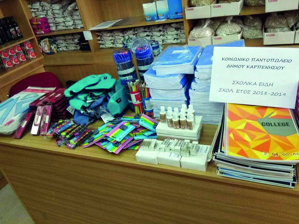 Πράξεις αλληλεγγύης πραγματοποιεί το Κοινωνικό Παντοπωλείο για τους πολίτες του τόπου που χρειάζονται στήριξη και βοήθεια. Συγκεκριμένα, το Παντοπωλείο θα προμηθεύσει σχολικά είδη, που αγοράστηκαν με δωρεά των θυγατέρων της Αμερικής, σε τέκνα των ωφελούμενων οικογενειών σύμφωνα με τις σχολικές τους ανάγκες.