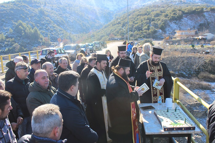 Γύρω στις 12 το μεσημέρι, παρουσία του Δημάρχου Αγράφων Θεόδωρου Μπαμπαλή, κληρικών και κατοίκων της περιοχής, στο μέσον της Γέφυρας πραγματοποιήθηκε η τελετή του καθαγιασμού των υδάτων, προεξάρχοντος του Ιεροκήρυκος της Ιεράς Μητροπόλεως Καρπενησίου π. Νήφωνα Συριανού, που ήταν πλαισιωμένος από τον Αρχιερατικό Επίτροπο της περιοχής π. Ευάγγελο Φεγγούλη και από τους εφημερίους Επισκοπής και Αγίου Βλασίου, π. Νεκτάριο Διώτη και π. Κων/νο Κοντογιώργο.