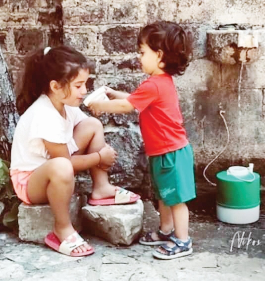 ΝΤ. Η φωτογραφία τραβήχτηκε στην Σκοπιά Ευρυτανίας (Τσεκλίστα) όπου κάθε καλοκαίρι πηγαίνω με την οικογένεια μου. Και η ιστορία της φωτογραφίας ξεκινάει κάπως έτσι… Ενα μεσημέρι ξεκίνησα από το σπίτι να πάω για νερό. Στο άκουσμα ότι πάω για νερό στην πηγή ο γιος μου και η βαπτιστήρα μου έτρεξαν πρώτοι από εμένα. Φτάνωντας τα παιδιά έτρεξαν να πιούνε νερό και το κάθε ένα να γεμίσει το δικό του παγούρι. Επικράτησαν για λίγα λεπτά έντονα συναισθήματα χαράς, γέλιου και αγάπης. Η ευτυχία και το αίσθημα φροντίδας που υπήρχε χαραγμένο στα πρόσωπα τους σε συνδυασμό με την μαγεία της φύσης με έκαναν να απαθανατίσω με την φωτογραφική μου μηχανή μια τόσο τρυφερή στιγμή.