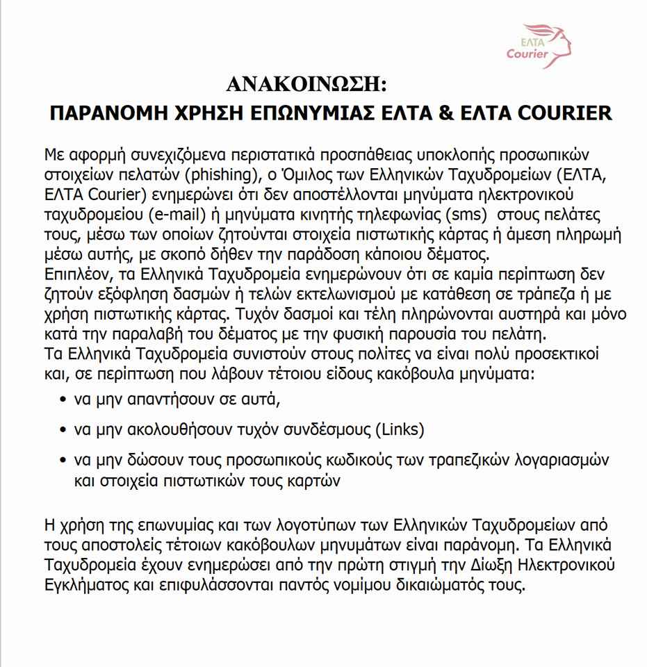 Παράνομη χρήση της επωνυμίας ΕΛΤΑ και ΕΛΤΑ Courier