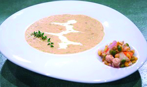 Σε μία κατσαρόλα με λίγο ελαιόλαδο σοτάρουμε όλα τα κομμένα λαχανικά. Προσθέτουμε τον πελτέ, τη ντομάτα, τα πολυσπόρια και νερό μέχρι να τα καλύψει. Αφήνετε να βράσουν για περίπου 40 λεπτά. Το ρίχνουμε στο thermomix για να το κάνουμε βελουτέ, το ξαναμεταφέρουμε στην κατσαρόλα, προσθέτουμε την κρέμα γάλακτος και αφήνουμε να πάρει μία βράση.