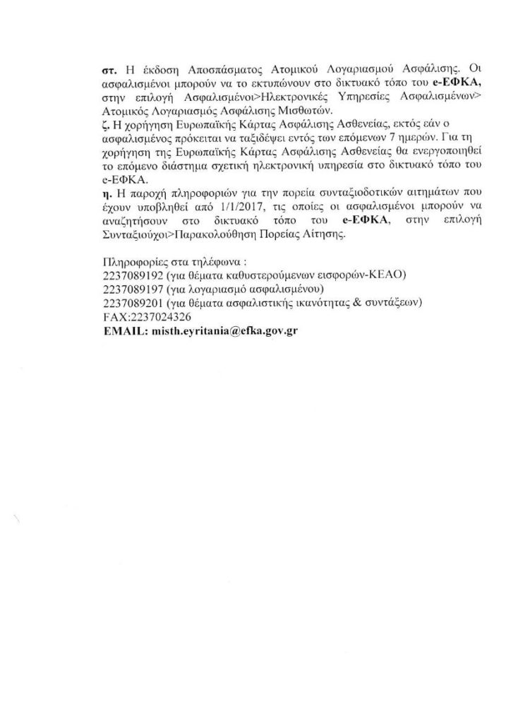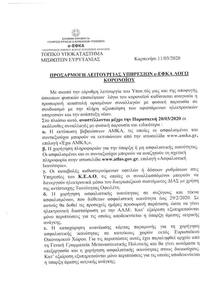 Προσαρμογή Λειτουργιών e-ΕΦΚΑ λόγω κορονοιού Ευρυτανικός Παλμός 6 έτη ago Η ανακοίνωση του υποκαταστήματος e-ΕΦΚΑ: