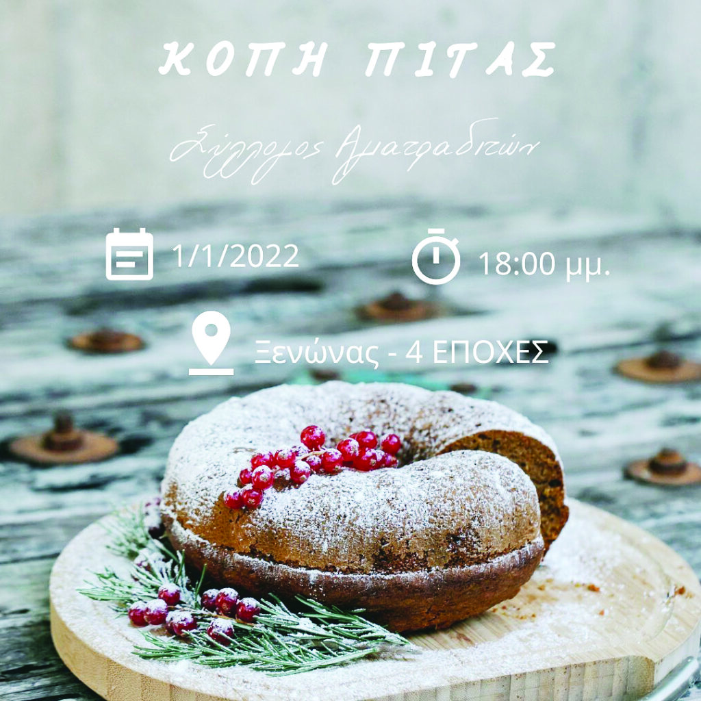 Σάββατο 1 Ιανουαρίου 2022 Ώρα 18:00 Κοπή Πίτας στην Αγία Τριάδα