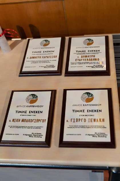 Μια ξεχωριστή βραδιά, πραγματοποιήθηκε την Κυριακή 22 Δεκεμβρίου 2019, στο Συνεδριακό Κέντρο Καρπενησίου, στα πλαίσια των Γιορτών Χειμώνα του Δήμου Καρπενησίου. Τρεις μόλις ημέρες πριν τα Χριστούγεννα, ο Δήμος μπαίνοντας στο «Πνεύμα των Χριστουγέννων», βράβευσε τους αριστεύσαντες μαθητές των σχολείων του Δήμου και παράλληλα, προκειμένου να ευχαριστήσει για την προσφορά τους στο τόπο μας, τίμησε τέσσερις σημαντικούς συμπολίτες μας.