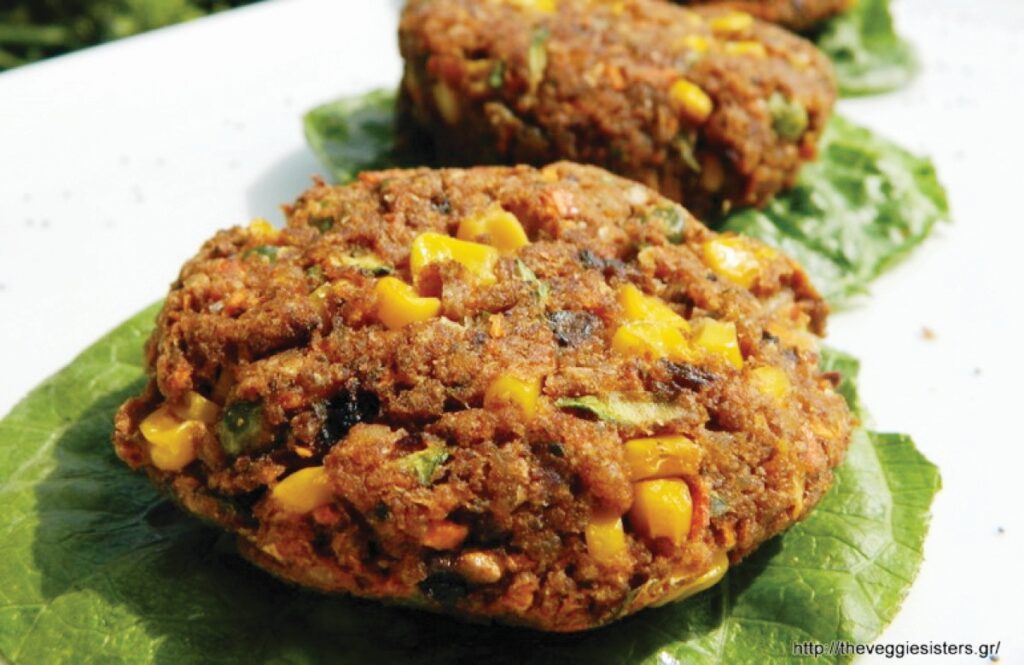 Βράζουμε το ρύζι μαζί με τον αρακά και το καλαμπόκι. Πολτοποιούμε στο μπλέντερ τα καρότα, το κρεμμύδι, τα σκόρδα, τις ντομάτες, τα μανιτάρια, τον μαϊντανό και τον δυόσμο. Τρίβουμε το κολοκύθι στον τρίφτη και το σουρώνουμε να φύγουν τα υγρά του. Ανακατεύουμε σε ένα μπολ όλα τα πολτοποιημένα υλικά μαζί με τα βρασμένα (αφού έχουν κρυώσει λίγο), το κολοκύθι και το ελαιόλαδο, αλατοπιπερώνουμε και ανακατεύουμε καλά να γίνει ένα ομοιογενές μείγμα. Προσθέτουμε την τριμμένη φρυγανιά. Σκεπάζουμε το μείγμα και το βάζω για δύο περίπου ώρες (ή και όλη νύχτα) στο ψυγείο. Πλάθουμε τα μπιφτέκια μου και τα αραδιάζουμε σε λαδόκολα ή φόρμα σιλικόνης, ψήνουμε σε προθερμασμένο φούρνο σε αέρα στους 200 βαθμούς για 25 λεπτά. Όταν είναι έτοιμα βγάλτε το ταψάκι από τον φούρνο και αφήστε τα πέντε λεπτάκια να σταθούν.