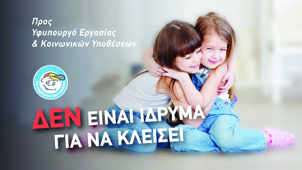 Να ξεκαθαρίσουμε ότι δεν πρόκειται για μία κόντρα με την κυβέρνηση, με την οποία έχουμε μία καλή συνεργασία, όπως και με τα αρμόδια Υπουργεία που καθημερινά συνεργαζόμαστε. Ζητάμε από τον κ. Πρωθυπουργό, επιστρέφοντας με το καλό από το ταξίδι του στις Η.Π.Α, να μας δει, και όχι μόνο να καταργηθεί αυτός ο αντισυνταγματικός νόμος, αλλά να θεσμοθετηθεί και να θωρακιστεί στην Ευρώπη και διεθνώς το “Χαμόγελο” ως κέντρο αναφοράς για κάθε παιδί που είναι σε ανάγκη ή κινδυνεύει.