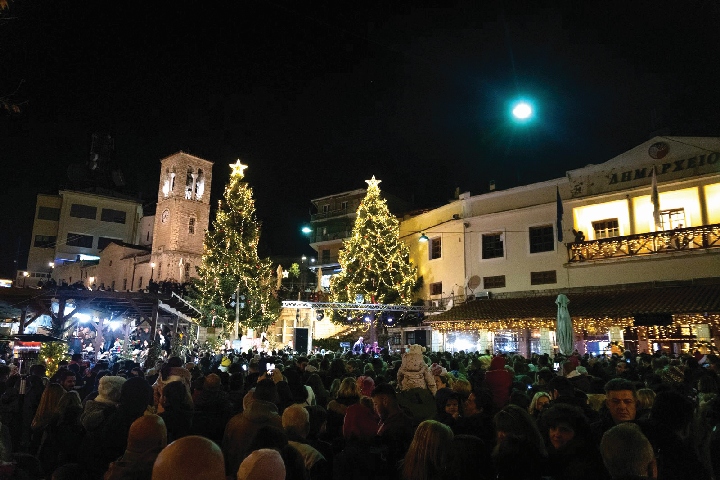 Έλαμψαν τα αστέρια των Χριστουγεννιάτικων δέντρων Καρπενησίου και Προυσού