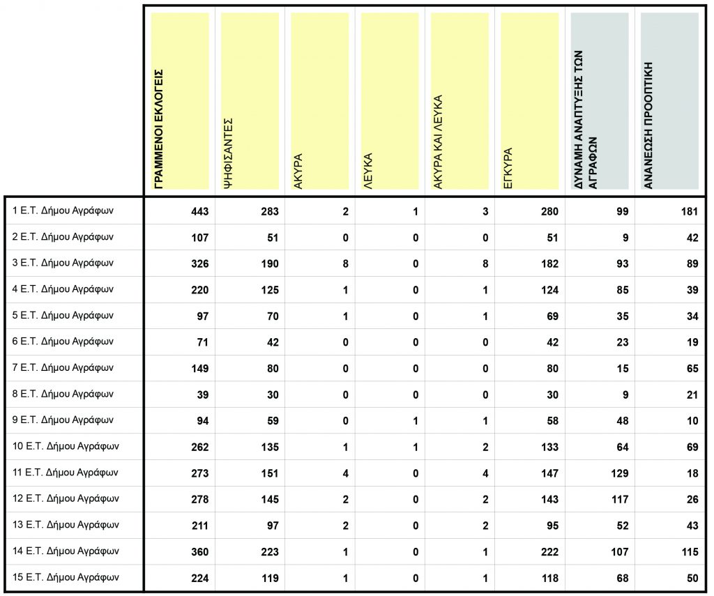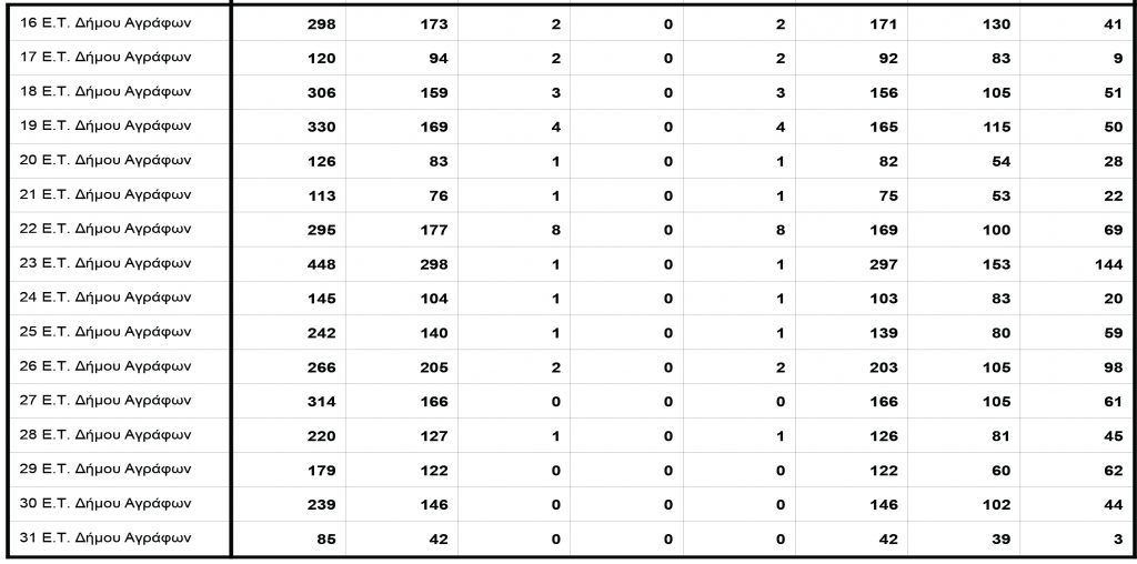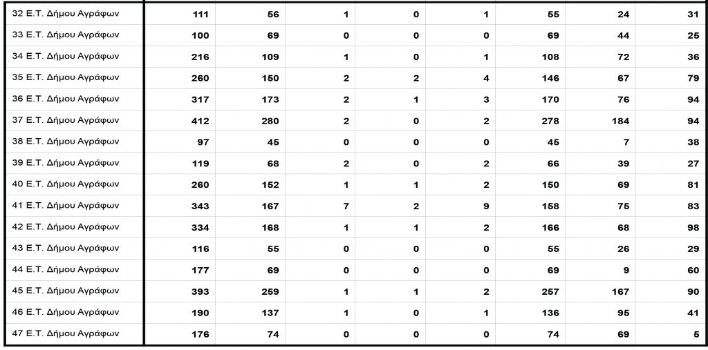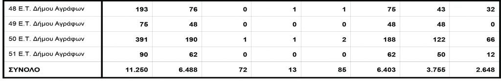 Τα αποτελέσματα του Πρωτοδικείου για το Δήμο Αγράφων έχουν ως εξής: