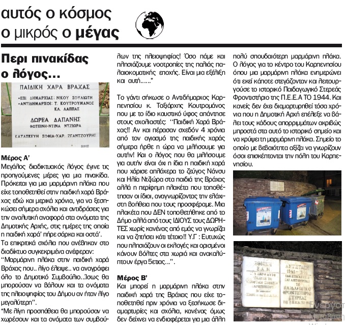 Σε άρθρο του μετά την αποκατάσταση του σημείου αναφέρει τα ακόλουθα: