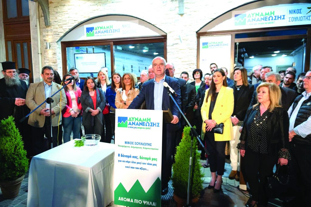 Πολλοί ήταν αυτοί που ανταποκρίθηκαν στο κάλεσμα του υποψήφιου δημάρχου Καρπενησίου Νίκου Σουλιώτη και παρευρέθηκε στα εγκαίνια του εκλογικού κέντρου του συνδυασμού του ΔΥΝΑΜΗ ΑΝΑΝΕΩΣΗΣ, που πραγματοποιήθηκαν τη Παρασκευή 3 Μαΐου, επί της οδού Ζηνοπούλου 19. Ο ίδιος ο κ.Σουλιώτης τόνισε ότι «Εγκαινιάζουμε το εκλογικό μας κέντρο, έναν ακόμη χώρο για εμάς όπου θα μπορούμε να επικοινωνήσουμε, να συζητήσουμε και να προβληματιστούμε μέχρι τη μέρα των εκλογών αλλά κυρίως και για την επόμενη ημέρα της ευθύνης μας».