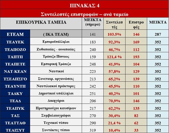 ΠΙΝΑΚΑΣ 4: Συντελεστές επιστροφών – ανά ταμείο