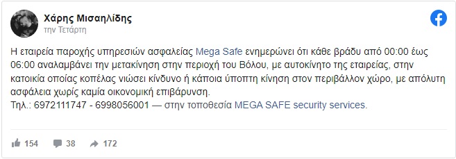 «Στο Βόλο έχουν γίνει διάφορα περιστατικά. Πήραμε αυτή την πρωτοβουλία σαν εταιρεία και η μεταφορά θα γίνεται αφιλοκερδώς. Θα υπάρχουν ανοιχτά δύο τηλέφωνα και εκεί μπορεί να καλεί όποια κοπέλα νιώσει κίνδυνο ή ανασφάλεια», ανέφερε ο κ. Μισαηλίδης στον Alpha.