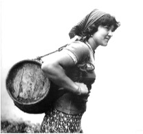 Φορτωμένες τη βαένα ροβολούσαν για τις βρύσες οι όμορφες νεροκουβαλήτρες. Η γυναίκα μπορεί να μην φορούσε σαμάρι στην πλάτη της, όμως ποτέ δεν της έλειπε το φόρτωμα, ήταν ένα φορτιάρικο μικρού ωφέλιμου φορτίου, όμως ανεκτίμητης αξίας! Ένα από τα σταθερά της φορτία ήταν η βαένα προς και από τη βρύση. Το βάρος της δεν ξεπέρναγε τις 14 οκάδες. Συνήθως η γυναίκα την κουβαλούσε ζαλιγκωμένη με τη μαλλινοτριχιά της, αλλά μπορούσε να την κουβαλά στο ώμο σαν πηλοφόρι λασπιά και σπάνια στο κεφάλι σαν ακροβάτης!