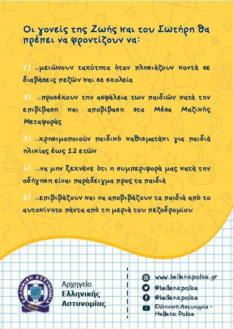 Με μια μεγάλη καμπάνια και με έξυπνο τρόπο η Ελληνική Αστυνομία και Τροχαία, ενημερώνει παιδιά και γονείς για την οδική ασφάλεια αλλά και τη συμπεριφορά οδηγών και πεζών στο δρόμο. Οι αφίσες αφηγούνται με απλό και χαρούμενο τρόπο όλα όσα πρέπει να ξέρουμε για την ασφάλειά μας στο δρόμο, μέσα από τις περιπέτειες της Ζωής και του Σωτήρη!