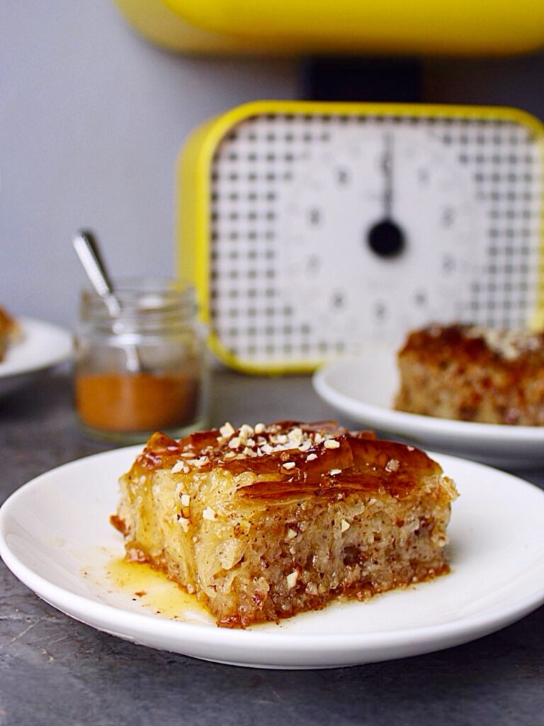 Για το σιρόπι βάζουμε το νερό, τη ζάχαρη, τη κανέλα και την φέτα λεμόνι σε μια κατσαρόλα και τα βράζουμε για 8-10 λεπτά. Στο τέλος προσθέτουμε μια κουταλιά της σούπας μέλι. Προθερμαίνουμε τον φούρνο στους 180 βαθμούς , με αέρα. Αλείφουμε με βούτυρο ένα ορθογώνιο ταψί 24 εκ. επί 34 εκ. Ανακατεύουμε τα αυγά, το γάλα και την κανέλα σε μια κανάτα και χτυπάμε μέχρι να ομογενοποιηθούν καλά. Αφήνουμε στην άκρη. Για την γέμιση ψήνουμε τα αμύγδαλα στο φούρνο μέχρι να πάρουν χρώμα, στη συνέχεια τα τρίβουμε στον ηλεκτρικό τρίφτη. Τα βάζουμε σε ένα μπολ μαζί με την κανέλα και την ζάχαρη. Ανακατευούμε μέχρι να ενωθούν τα υλικά. Για το σουφλέ λιώνουμε πρώτα το βούτυρο. Απλώνουμε ένα φύλλο ζύμης και τι αλείφουμε με βούτυρο. Χρησιμοποιώντας τα δάχτυλά, διπλώνουμε τη ζύμη σε ένα σχέδιο αρκοντεόν. Μεταφέρουμε το διπλωμένο φύλλο στο ταψί. Επαναλαμβάνουμε την ίδια διαδικασία για όλα τα φύλλα μέχρι να γεμίσει το ταψί. Βουτυρώνουμε και ψήνουμε στο φούρνο για 20 λεπτά σε προθερμασμένο φούρνο στους 180 βαθμούς στον αέρα. Βγάζουμε από το φούρνο και περιχύνουμε ομοιόμορφα την έτοιμη κρέμα (αυγά, γάλα, κανέλα) πάνω από τη ζύμη. Το ξανά βάζουμε στο φούρνο για άλλα 15-20 λεπτά, ή μέχρι να ροδίσει. Αφού ψηθεί , σιροπιάζουμε με σιρόπι κρύο και σουφλέ μπακλαβά ζεστό.