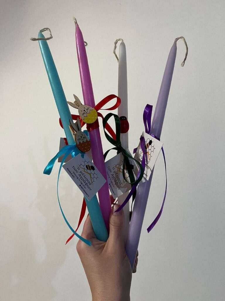 Πάνω από 200 χειροποίητες λαμπάδες κατασκεύασαν και πρόσφεραν στα πλαίσια των σκοπών κοινωνικής προσφοράς τα μέλη της Κοινωνικής Συνεταιριστικής Επιχείρησης των Αγράφων ‘Η ΜΕΛΙΣΣΑ ΤΩΝ ΑΓΡΑΦΩΝ’. Οι λαμπάδες μοιράστηκαν από την νεοσύστατη ΚΟΙΝΣΕΠ των Αγράφων στις σχολικές μονάδες της Α’ θμιας Εκπαίδευσης του Δήμου Αγράφων. Οι πολύχρωμες λαμπάδες για την Ανάσταση έδωσαν μεγάλη χαρά σε όλα τα μικρά παιδιά.