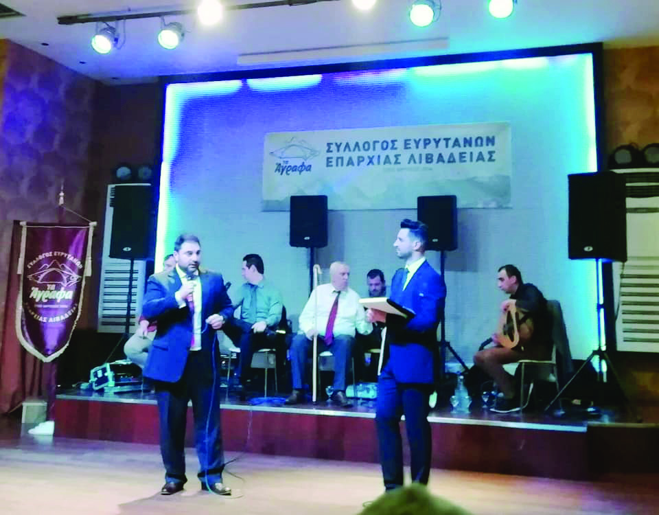 Την ετήσια εκδήλωση κοπής βασιλόπιτας διοργάνωσε ο Σύλλογος Ευρυτάνων Επαρχίας Λιβαδειάς “Τα Άγραφα” το Σάββατο 19 Ιανουαρίου στη Λειβαδιά. Ακολούθησε μουσική βραδιά με τον Γιάννη Γκόβαρη, έναν από τους πλέον ιδιαίτερους, αυθεντικούς και πολυαγαπημένους καλλιτέχνες στο είδος της παραδοσιακής μουσικής του τόπου μας. Στην κοπή πίτας του Συλλόγου Ευρυτάνων Επαρχίας Λιβαδειάς “Τα Άγραφα” παρευρέθηκε ο Πρόεδρος του Δημοτικού Συμβουλίου Καρπενησίου κ. Κλεομένης Λάππας.