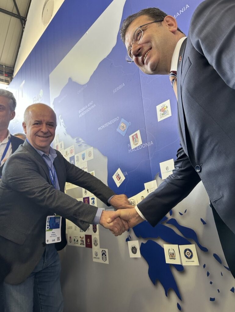Ο ίδιος δήλωσε μεταξύ άλλων τα εξής: «Οι πόλεις δεν έχουν τίποτα να χωρίσουν, έχουν όμως πολλά να μοιραστούν. Πολλά συγχαρητήρια στο δήμαρχο Αθηναίων Κώστα Μπακογιάννη για την διοργάνωση του συνεδρίου των Β40 στην Αθήνα, μιας γιορτής της δημοκρατίας και καλή επιτυχία στην θητεία του στη θέση του Προέδρου για το επόμενο διάστημα. Όλοι μαζί μπορούμε να πετύχουμε περισσότερα. Μπορούμε να αισθανόμαστε πιο ασφαλείς. Μπορούμε να ελπίζουμε σε καλύτερα για όλους. Μπορούμε να νιώθουμε πιο δυνατοί. Με τον Δήμαρχο Κωνσταντινούπολης Εκρεμ Ιμάμογλου και τον Δήμαρχο Αθηναίων Κώστα Μπακογιάννη βάλαμε το έμβλημα του Δήμου Καρπενησίου στο χάρτη των Βαλκανίων. Αποτελούμε κομμάτι της γέφυρας αλληλεγγύης των Βαλκανικών πόλεων».