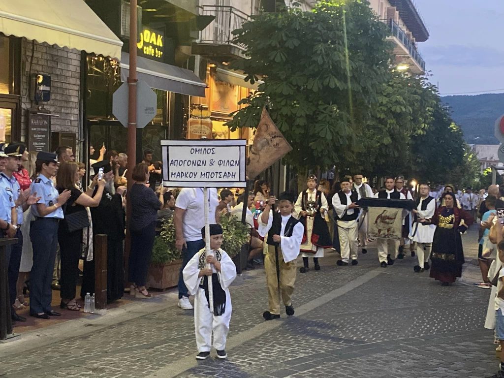 Αναλυτικότερα, την Παρασκευή 4 Αυγούστου περισσότεροι από 25 σύλλογοι και φιλαρμονικές παρέλασαν στο κέντρο της πόλης και ακολούθησε η ομιλία της κας Χρύσας Σουλιώτη Γενικής Γραμματέα του Πολιτιστικού Συλλόγου Ενορίας Ευρυτάνων Αγίων «Ο Μάρκος Μπότσαρης».