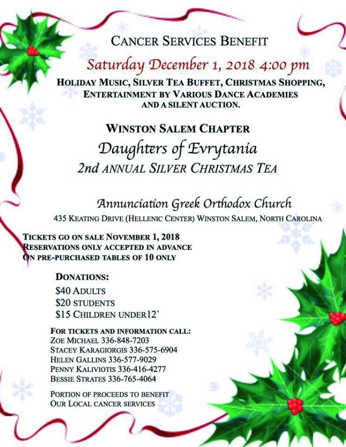 Άλλη μια εκδήλωση φιλανθρωπικού χαρακτήρα θα διοργανώσουν το Σάββατο 1 Δεκεμβρίου 2018, οι ‘Θυγατέρες της Ευρυτανίας’ στην Βόρεια Καρολίνα των ΗΠΑ. Η εκδήλωση θα περιλαμβάνει μουσική και bazaar με χριστουγεννιάτικα δώρα και τα έσοδα όπως πάντα θα διατεθούν για φιλανθρωπικό σκοπό. Η ένωση των γυναικών απόδημων Ευρυτανισσών, που ιδρύθηκε το 1944 και είναι παράρτημα της Ένωσης Ευρυτάνων ‘Βελούχι’, έχει σαν πρωταρχικό της μέλημα την ενίσχυση ανθρώπων που το έχουν ανάγκη. Η φετινή εκδήλωση λίγο πριν τα Χριστούγεννα θα είναι αφιερωμένη στην υποστήριξη ατόμων που πάσχουν από καρκίνο και θα διατεθούν σε άτομα της ομογένειας και σε Ευρυτάνες.