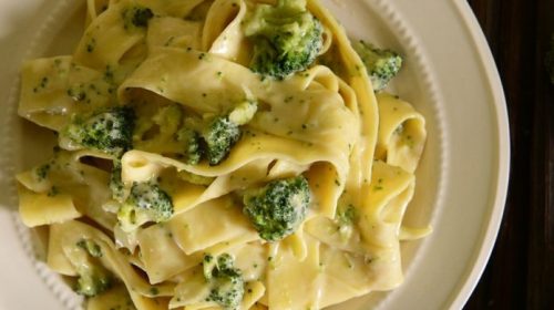 Βράζετε τα μπουκετάκια του μπρόκολου σε άφθονο αλατισμένο νερό για 10 λεπτά. Τα βγάζετε από την κατσαρόλα με τρυπητή κουτάλα και τα ρίχνετε σε παγωμένο νερό από το ψυγείο και μετά το στραγγίζετε. Στο ίδιο νερό που βράσατε το μπρόκολο και ενώ βρίσκεται σε βρασμό ρίχνετε τις παπαρδέλες να βράσουν αλ ντέντε. Στο τέλος τις στραγγίζετε και κρατάτε 1 φλιτζάνι από το νερό που έβρασαν. Παράλληλα σε ένα ευρύχωρο τηγάνι ρίχνετε το τυρί κρέμα, το blue cheese και το γάλα και το βάζετε σε μέτρια φωτιά. Ανακατεύετε να διαλυθoύν τα τυριά και μετά προσθέτετε τα μπουκετάκια του μπρόκολου και τη γραβιέρα. Τέλος προσθέτετε στο τηγάνι τις παπαρδέλες και ανακατεύετε καλά. Προσθέτετε μπόλικο πιπέρι και όσο νερό χρειάζεται να αποκτήσουν τα ζυμαρικά την επιθυμητή ρευστότητα. Σερβίρετε τα ζυμαρικά σε πιάτα πασπαλίζοντας με τριμμένη παρμεζάνα.