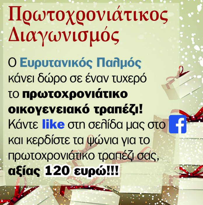 Χωρίς κατηγορία Πρωτοχρονιάτικος Διαγωνισμός Από Ευρυτανικός Παλμός - 11 Δεκεμβρίου 2018 5747 FacebookTwitterLinkedinWhatsAppTelegramEmailΤυπώνω
