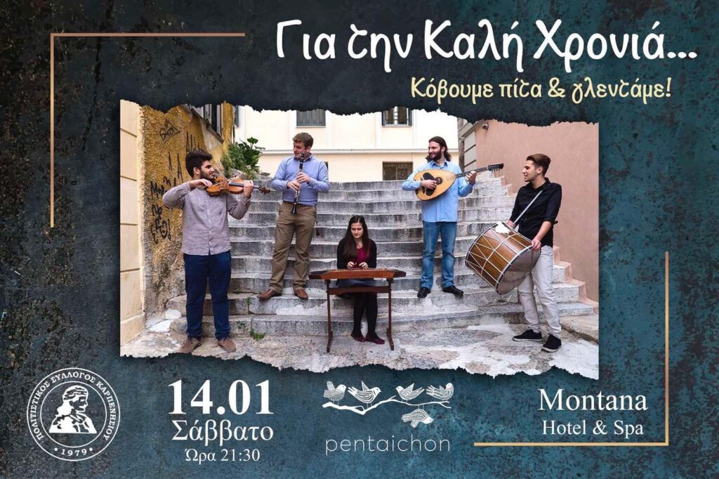Σάββατο 14 Ιανουαρίου 2023 | Ώρα: 21.30 ο Ο Πολιτιστικός Σύλλογος Καρπενησίου κόβει την πίτα του στο Hotel spa Montana με το παραδοσιακό συγκρότημα «Πεντάηχον».