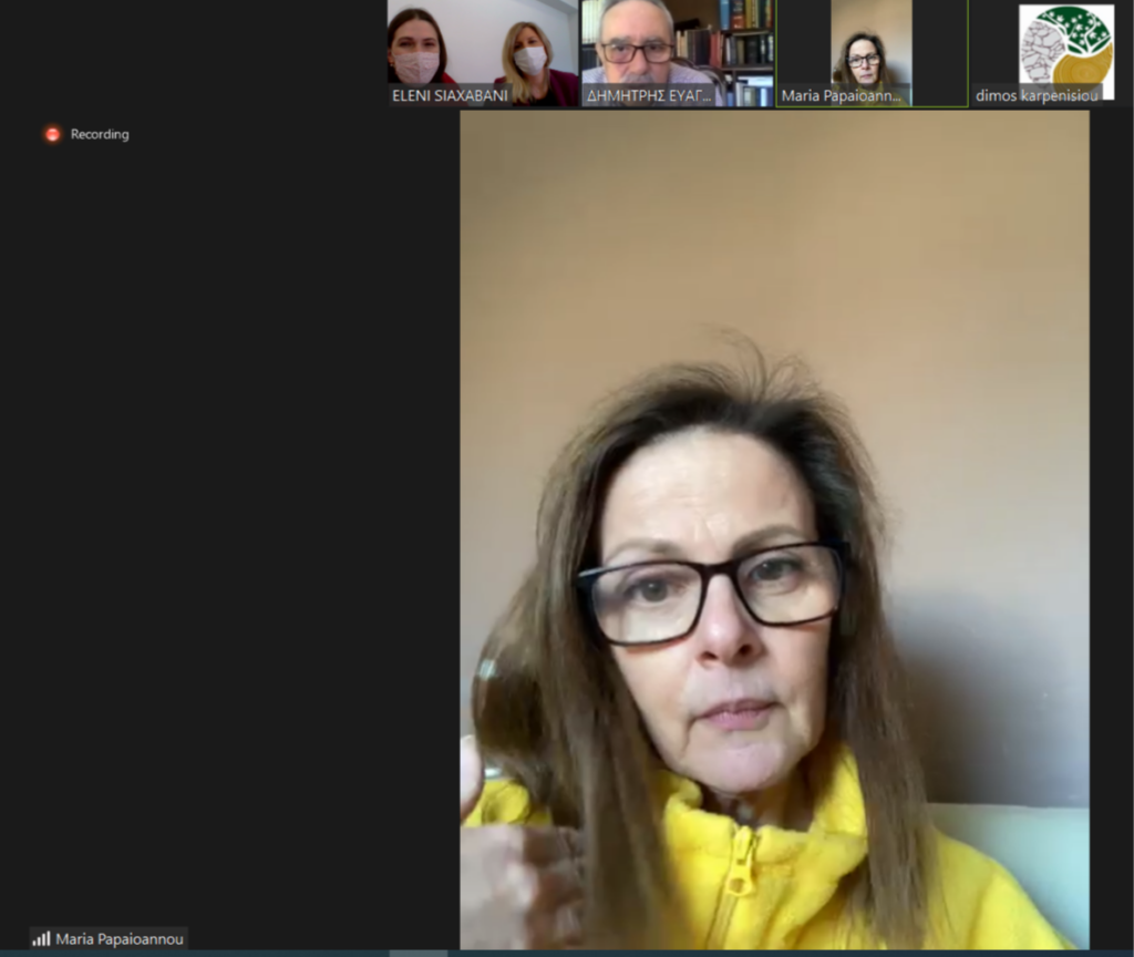 Στην τηλεδιάσκεψη έλαβαν μέρος η αντιδήμαρχος Καρπενησίου αρμόδια σε θέματα Πολιτισμού και Παιδείας κυρία Σοφία Ζαλοκώστα και η Σύμβουλος του Δημάρχου Νίκου Σουλιώτη, σε θέματα Πολιτισμού και Ιστορίας, καθώς και πολιτιστικής ανάπτυξης, κυρία Έλενα Σιαξαμπάνη, η πρόεδρος του Συλλόγου Καρπενησιωτών αρχιτέκτονας κυρία Μαρία Παπαϊωάννου και ο αντιπρόεδρος του Συλλόγου κ. Δημήτρης Ευαγγελοδήμος.
