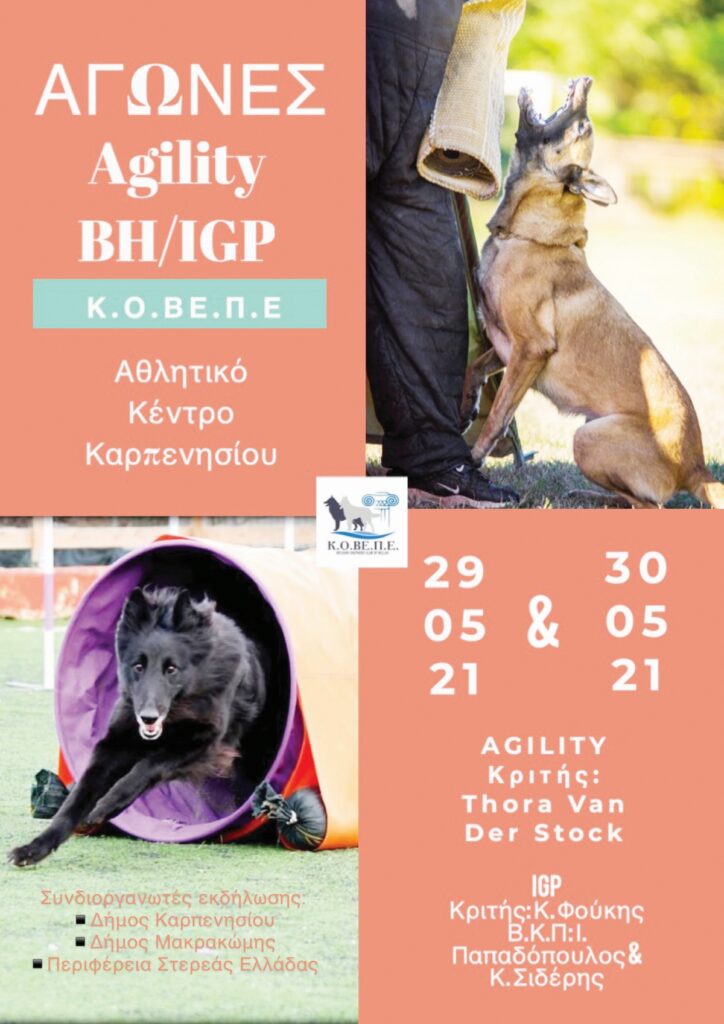 Ο Κυνοφιλικός Όμιλος Βελγικών Ποιμενικών Ελλάδας, σε συνεργασία με το Δήμο Καρπενησίου, την Αντιπεριφέρεια Π.Ε. Ευρυτανίας και το Δήμο Μακρακώμης, διοργανώνουν το Σάββατο 29 και Κυριακή 30 Μαΐου 2021 τους πρώτους αγώνες Agility BH/ IGP στο Αθλητικό Κέντρο Καρπενησίου από. Οι αγώνες θα πραγματοποιηθούν στο πλαίσιο προετοιμασίας για το Παγκόσμιο Πρωτάθλημα Βελγικών Ποιμενικών που θα φιλοξενηθεί το Μάιο του 2022 στην πόλη μας και θα πραγματοποιηθούν με την τήρηση όλων των υγειονομικών πρωτοκόλλων σύμφωνα με τις οδηγίες της Γενικής Γραμματείας Αθλητισμού και της Πολιτικής Προστασίας.
