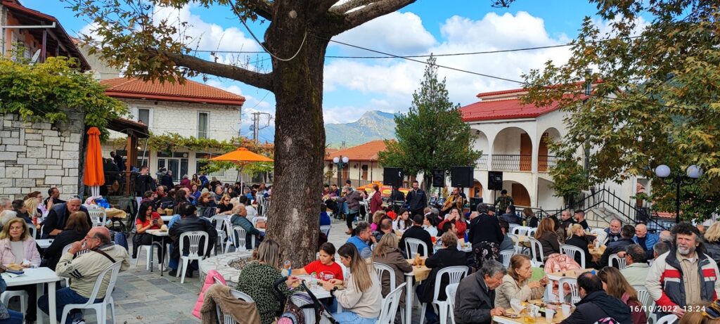 Πλήθος κόσμου, ντόπιοι αλλά και επισκέπτες παρευρέθηκαν στην κεντρική εκδήλωση της διοργάνωσης, με τον Σύλλογο Αγιατριαδιτών που αριθμεί 400 ενεργά μέλη, να καλωσορίζει τους φιλοξενούμενους και να προσφέρει εδέσματα από τα τοπικά προϊόντα της περιοχής, το πρωί της Κυριακής 16 Οκτωβρίου. Ζωντανή μουσική και χορό απόλαυσαν οι παρευρισκόμενοι ταυτόχρονα με τα ψητά κάστανα αλλά και τα εδέσματα του Συλλόγου. Οι επιχειρήσεις ΤΣΙΑΤΣΟΣ ΠΑΡΑΔΟΣΙΑΚΆ ΠΡΟΪΌΝΤΑ και ΚΟΙΝΣΕΠ ‘Η ΕΥΡΥΤΗ’, πρόσφεραν προϊόντα τους σαν χορηγία στην εκδήλωση. Στην εκδήλωση παρευρέθηκαν ο Αντιπεριφερειάρχης της Π.Ε Ευρυτανίας κ. Αριστείδης Τασιός, η Θεματική Αντιπεριφερειάρχης Ορεινής, Δασικής Οικονομίας και Κτηνοτροφίας κα. Κατερίνα Καλαντζή, ο Δήμαρχος Καρπενησίου κ. Νίκος Σουλιώτης, Αντιδήμαρχοι, Πρόεδροι Κοινοτήτων, Εκπρόσωποι Φορέων Συλλόγων κ.ά.
