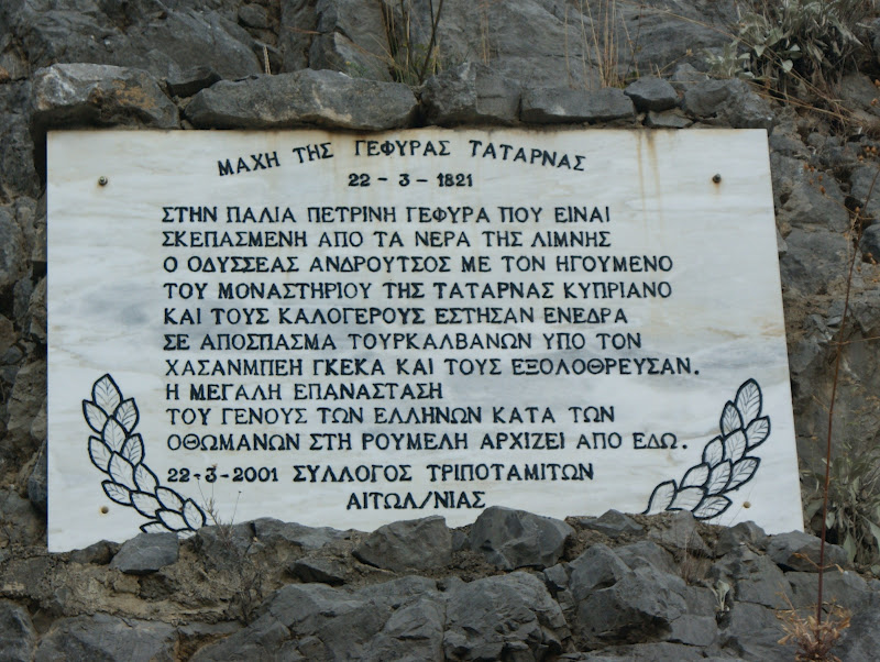 Χρειάστηκαν σχεδόν 150 χρόνια για να γιορταστεί για πρώτη φορά η μάχη της Τατάρνας, το 1973. Μια απλή μαρμάρινη πλάκα, τοποθετημένη από το Σύλλογο Τριποταμιτών σε ένα βράχο δίπλα στη γέφυρα, θυμίζει όσα οφείλουμε να μην ξεχνάμε…
