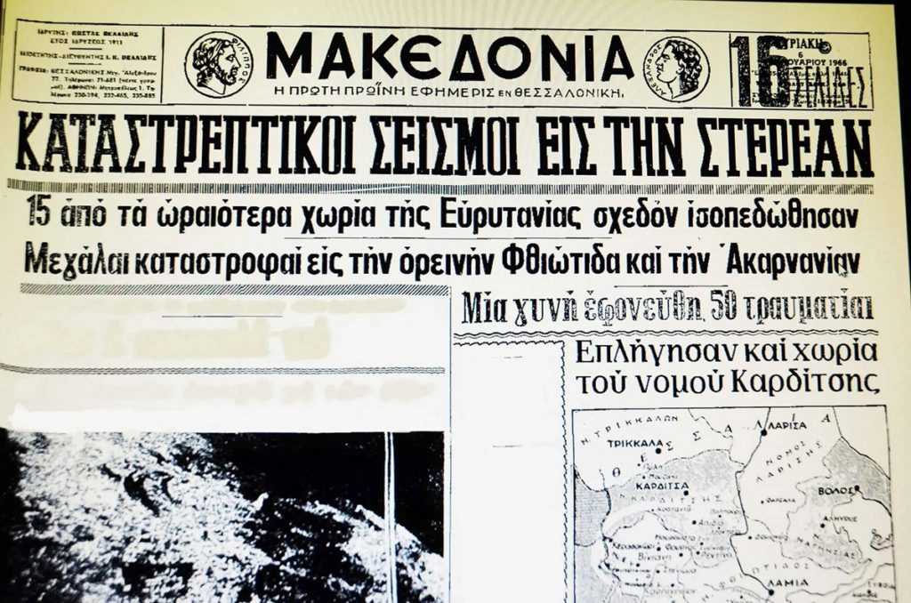 Η 5η Φλεβάρη του 1966, ημέρα Παρασκευή ξημέρωσε με έναν τραγικό απολογισμό για την Ευρυτανία. Στις πρώτες πρωινές ώρες σημειώθηκαν μια σειρά από σοβαρές σεισμικές δονήσεις στις 4.12′, την 4.57′ και την 4.58′. πμ, ενώ ήδη είχε προηγηθεί μια εβδομάδα με μικροσεισμούς, με μεγαλύτερη αυτή των 5,6 ρίχτερ που είχαν σαν αποτέλεσμα την ολοκληρωτική καταστροφή 15 χωριών της Ανατολικής και Δυτικής Ευρυτανίας , τεράστιες υλικές ζημιές, 9.000 αστέγων, 50 τραυματιών και την απώλεια μιας ανθρώπινης ζωής.