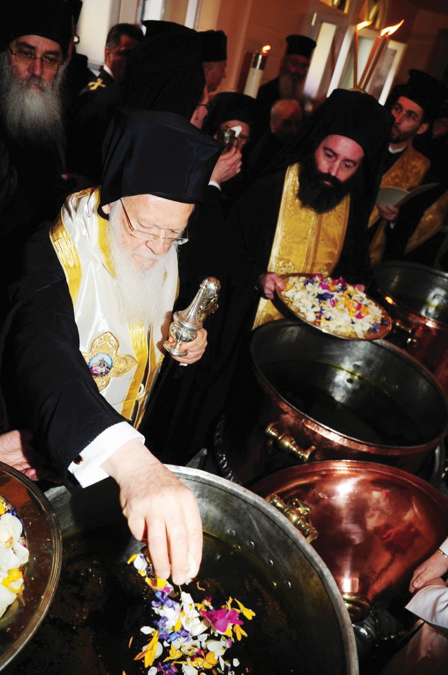Η τελετουργική διαδικασία της έψησης (παρασκευής) του Αγίου Μύρου, που πραγματοποιείται μια φορά στα 10 χρόνια, αρχίζει τη Μεγάλη Δευτέρα στο Φανάρι, στο Κουβούκλιο του Οικουμενικού Πατριαρχείου.