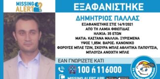 Λαμία – Missing Alert: Εξαφανίστηκε ο 35χρονος Δημήτριος Πάλλας