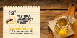 «13ο Φεστιβάλ Ελληνικού Μελιού και Προϊόντων Μέλισσας» 2 – 4 Δεκεμβρίου...