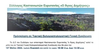 15 Μαϊου η Γενική συνέλευση του συλλόγου Καστανιωτών Ευρυτανίας