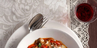 Μοσχάρι κοκκινιστό με πιπεριές και ξινόκρεμα