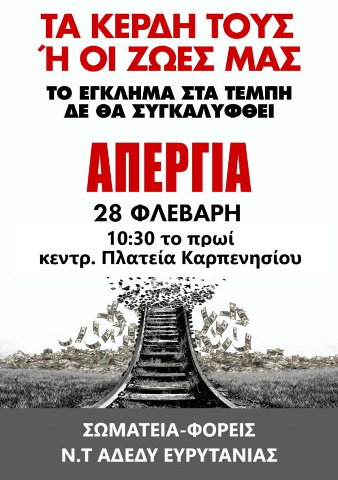 Τα σωματεία, φορείς και η ΑΔΕΔΥ Ευρυτανίας σε ανακοίνωσή τους αναφέρουν: