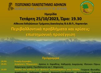 Ημερίδα με θέμα ‘‘Περιβαλλοντικά προβλήματα και τις περιβαλλοντικές κρίσεις’’, σε συνεργασία με το Τμήμα Αξιοποίησης Φυσικών Πόρων & Γεωργικής Μηχανικής του Γ.Π.Α..
