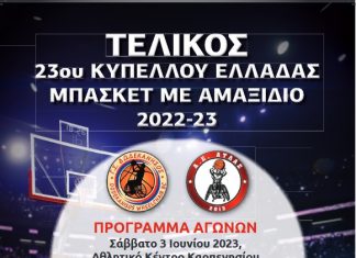 Τελικός 23ου Κυπέλλου Ελλάδας Μπάσκετ με Αμαξίδιο 2022- 23. Συνδιοργάνωση Περιφέρεια Στερεάς Ελλάδας, Ομοσπονδία Σωματίων Ελλήνων Καλαθοσφαιριστών με Αμαξίδιο. Με την υποστήριξη...