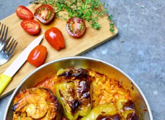 Τα Σαρακοστιανά: Πιπεριές γεμιστές με κριθαράκι 7 γαρίδες