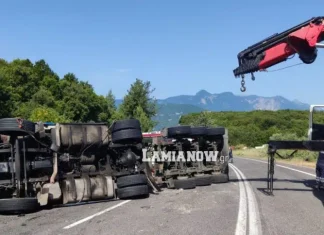 Φθιώτιδα : Δίπλωσε νταλίκα στις στροφές του Μπράλου (φώτο)