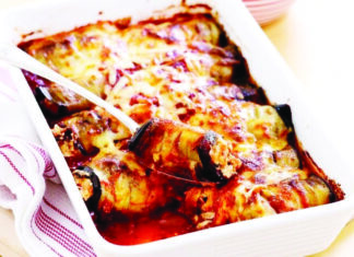 Μελιτζάνες ρολάκια με κιμά στο φούρνο