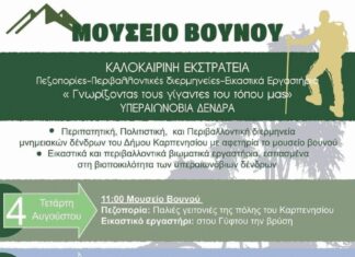 Μια αξιέπαινη δράση ξεκινάει το φετινό Αύγουστο στο Καρπενήσι με ‘αφετηρία’ το Μουσείο Βουνού. Πρόκειται για την καλοκαιρινή εκστρατεία του,...