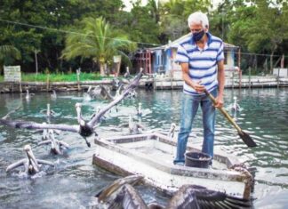 Για 20 χρόνια ο Λεονάρντο Καρίλο, φροντίζει τους 100 περίπου πελεκάνους που βρίσκουν καταφύγιο στην ξύλινη καλύβα του στη νότια ακτή της Κούβας.