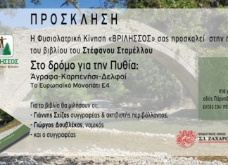 Βιβλιοπαρουσίαση από την Φυσιολατρική Κίνηση ‘ΒΡΙΛΗΣΣΟΣ’ του βιβλίου του Στέφανου Σταμέλλου ‘Στο δρόμο για την Πυθία, Άγραφα- Καρπενήσι – Δελφοί. Το Ευρωπαϊκό μονοπάτι...