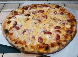Σπιτική πίτσα με χωριάτικο λουκάνικα