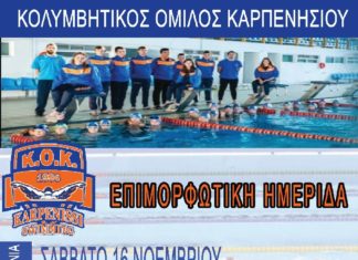 Το Σάββατο 16/11/2019 και ώρα 12.00 μ.μ. ο Κολυμβητικός Όμιλος Καρπενησίου...
