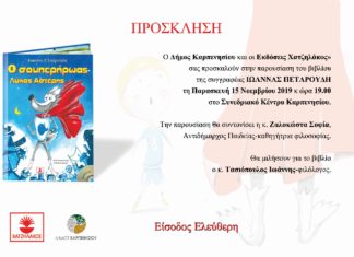 Παρασκευή 15/11/2019, ώρα 19.00 μ.μ στο Συνεδριακό Κέντρο Καρπενησίου, η παρουσίαση...